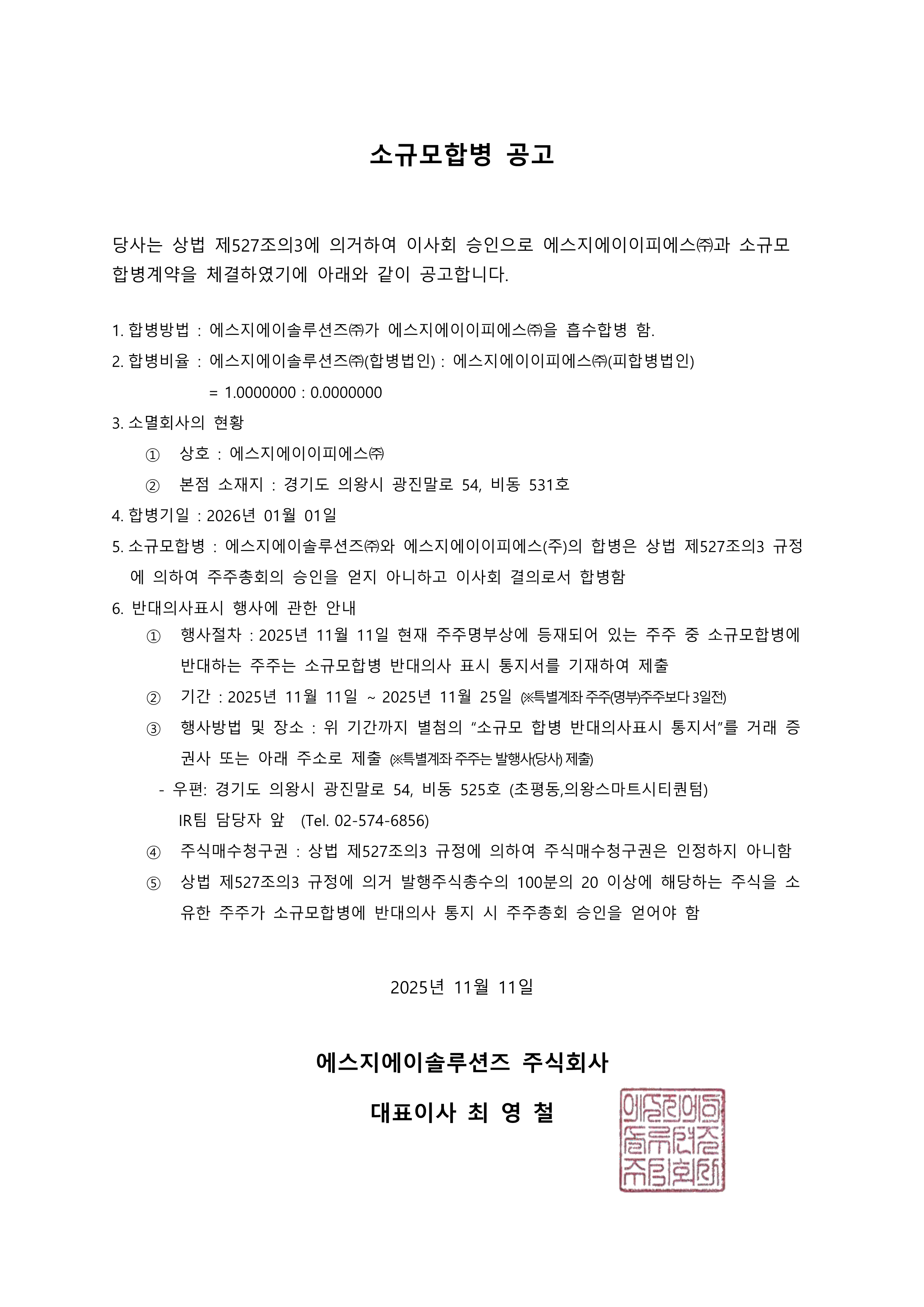 소규모합병 공고